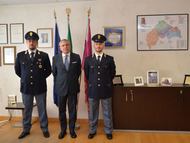 Il questore Cesare Capocasa insieme a Daniele Romagnoli (a sinistra) e Mattia Marchetti (a destra)