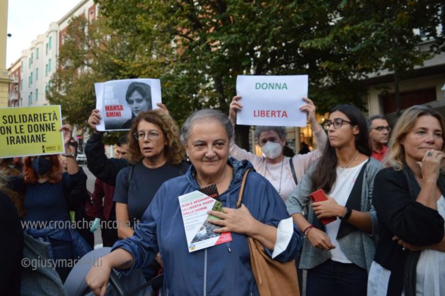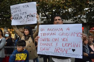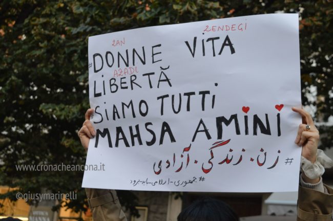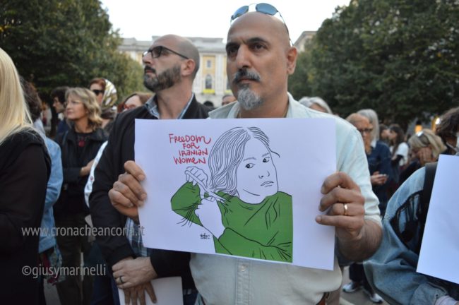 la 22enne uccisa nei giorni scorsi dalla polizia morale in quanto rea di avere una ciocca di capelli fuori dal velo.“Donna, vita, libertà” è stato lo slogan e il tema portante di tutta la manifestazione definita «Per i diritti e completamente apolitica» dagli organizzatori Amnesty, Terza Via e Amad. Ed in effetti di simboli e stemmi politici non se ne sono visti.