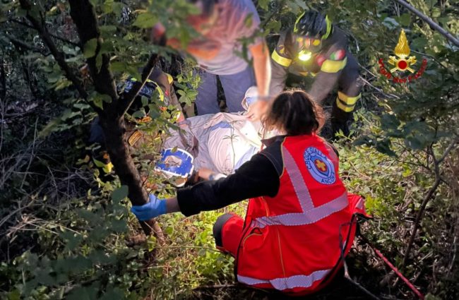 I pompieri hanno lavorato su una pendenza di 60 gradi e ciò non ha reso affatto semplice l’operazione di soccorso, durata complessivamente poco meno di un’ora.