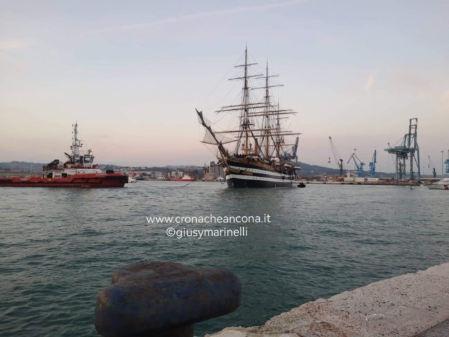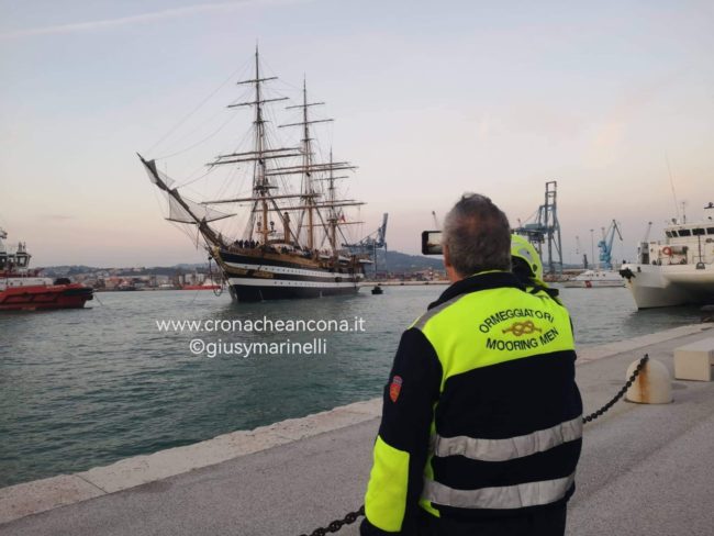 Maestosa e leggendaria, la “Amerigo Vespucci” è entrata nel porto di Ancona alle 7 di questa mattina e intorno alle 7.30 ha ormeggiato alla banchina San Francesco dove resterà fino a domani, il 13 ottobre.