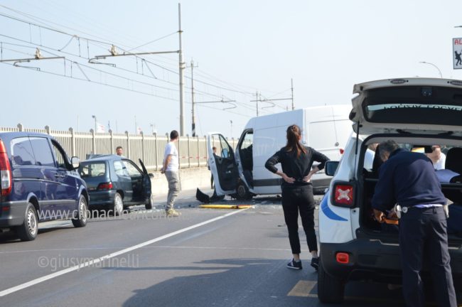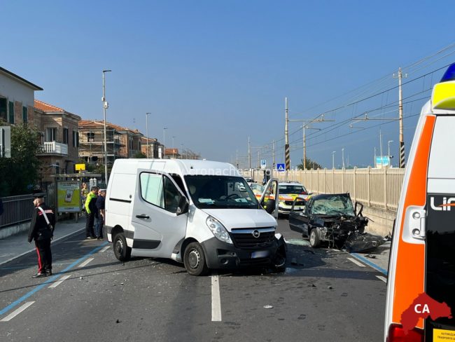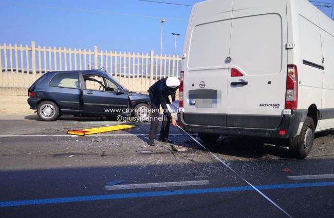 Lo scontro si è verificato intorno alle 12.30 a Falconara, all’altezza del negozio ‘All Sport Caccia e Pesca Sub’.