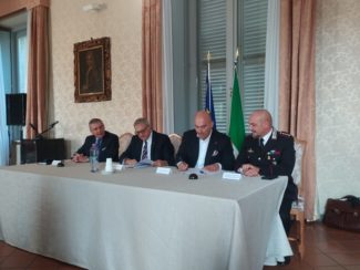 La firma del protocollo in prefettura, da sin. il questore Capocasa, il prefetto Pellos, il sindaco Pugnaloni e il colonnello Lecca