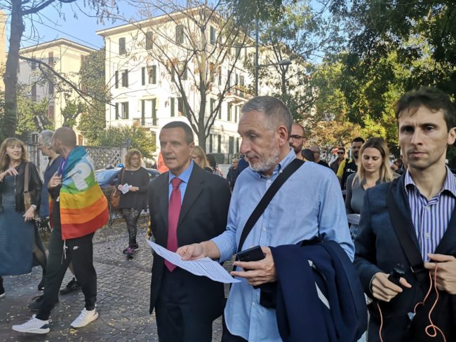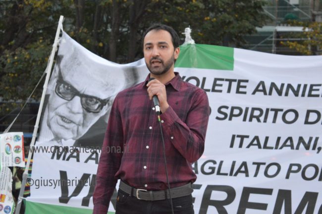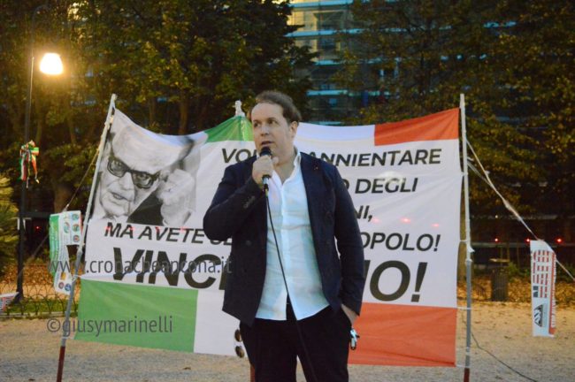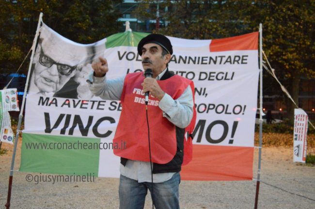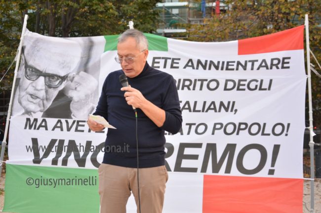 Moreno Pasquinelli Di Fronte del dissenso ha invece un pensiero critico verso molti enti presenti: «Oggi vedo qui tanti partiti e tanti movimenti dalla voce alternativa. Oggi siamo uniti ma non è stato così il 25 settembre. Ed i risultati si sono visti. Facciamone tesoro per il futuro» E per finire simpatica provocazione di Alessio Canalini di Cittadini Liberi Pesaro che all’alzare della musica da parte del gestore della ruota panoramica posta al lato opposto al palchetto da cui tutti parlavano ha chiesto a microfono aperto: «Uè ma non puoi chiudere tutto 10 minuti soltanto e farci parlare». L’appello ovviamente non è stato udito perché la distanza era troppa anche in linea d’aria e dunque non accolto.