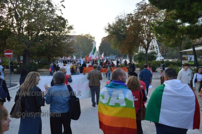 Fuori dalla guerra fuori Dalla Nato”. È questo il forte slogan forte quello utilizzato oggi pomeriggio per la terza manifestazione di pace in tre settimane e promossa per l’occasione anche da vari partiti politici. Enon a caso, i contenuti sono stati molto più forti e marcati delle altre due. La manifestazione è stata organizzata da Cittadini Liberi Pesaro, Comitato No Guerra No Nato Ancona, Italia Sovrana e Popolare, Fisi, Resistenza Costituzionale, Comitato di Liberazione Nazionale, il Nau, Vita, Fronte del Dissenso e Italexit. Ma molti altri sono stati i partiti, i sindacati le associazioni, i movimenti e di comitati presenti con le loro bandiere e i loro striscioni.