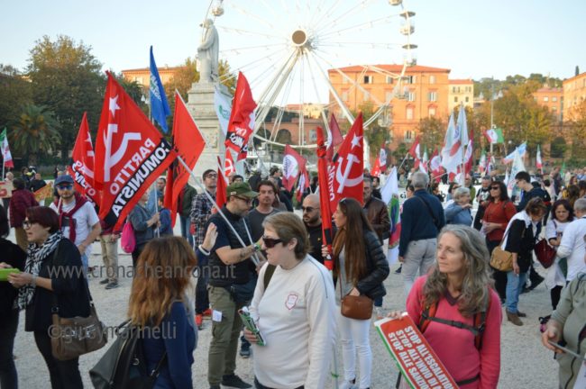 ANCONA - Oggi pomeriggio alla manifestazione, sfilata fino a piazza Cavour e organizzata da Cittadini Liberi Pesaro, Comitato No Guerra No Nato Ancona, Italia Sovrana e Popolare, Fisi, Resistenza Costituzionale, Comitato di Liberazione Nazionale, il Nau, Vita, Fronte del Dissenso e Italexit, si sono uniti anche esponenti di comitati e associazioni