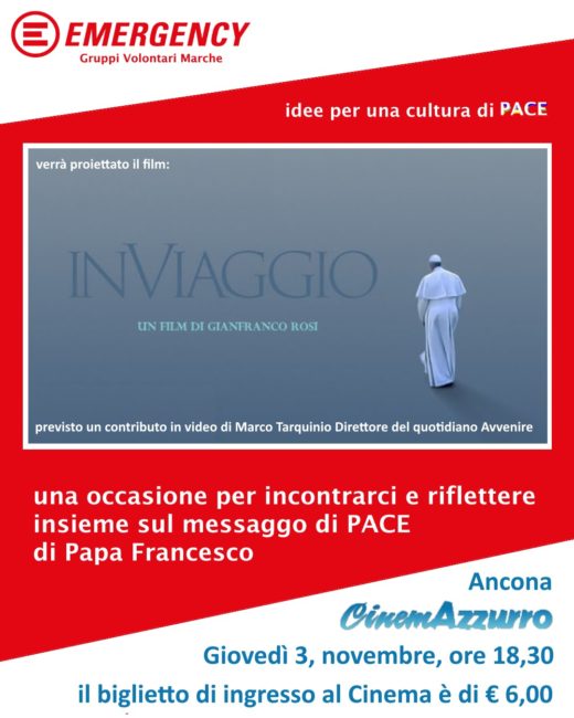 Primo appuntamento al CinemAzzurro di Ancona giovedì alle 18.30 con la proiezione del film di Gianfranco Rosi: ‘In Viaggio’, un docufilm uscito nelle sale il 4 ottobre scorso, che racconta nove anni di pontificato di Papa Francesco, attraverso 37 viaggi, dal Brasile a Cuba, dagli Stati Uniti all’Africa, fino al sud est asiatico, visitando 59 paesi. Un’occasione, anche con il contributo video del Direttore di Avvenire Marco Tarquinio, per riflettere sul messaggio di pace di Papa Francesco.