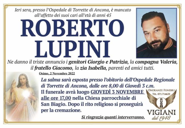 Roberto Lupini, 45 anni, è morto all’improvviso dopo essere stato colto da un ictus che lo ha colpito due settimane fa. Ricoverato a Torrette, il quadro clinico si è purtroppo aggravato nella tarda serata di ieri.