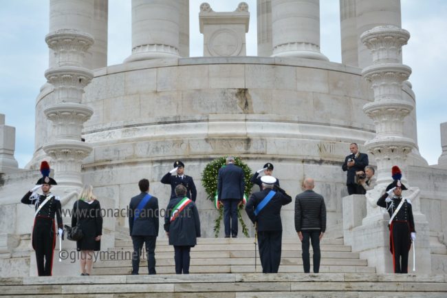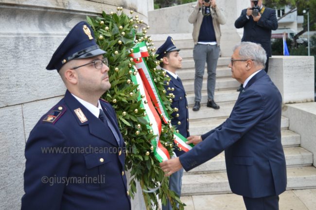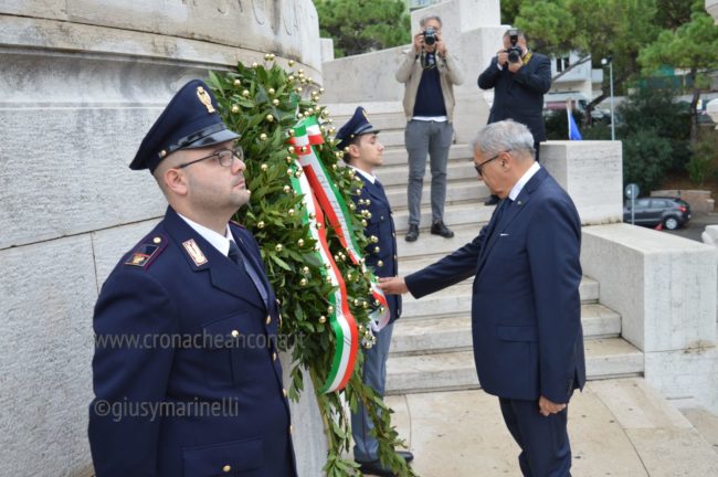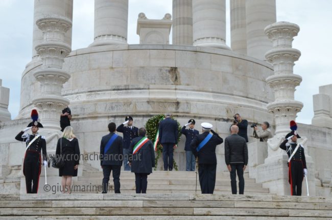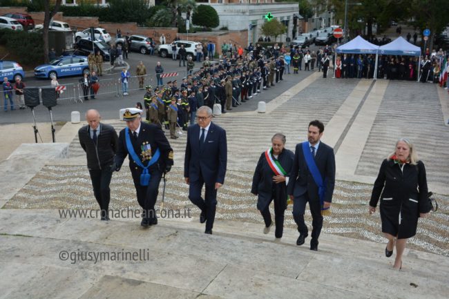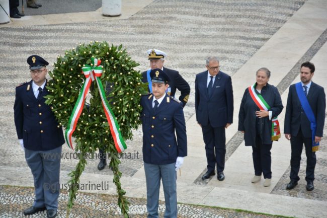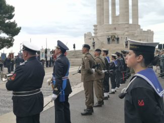 Si sono svolte oggi, venerdì 4 novembre, alle ore 10 al Monumento ai Caduti di Ancona, in piazza IV Novembre, le celebrazioni del Giorno dell’Unità Nazionale e Giornata delle Forze Armate con la cerimonia dell’alza bandiera e deposizione corone a cura del Comando Scuole della Marina Militare.