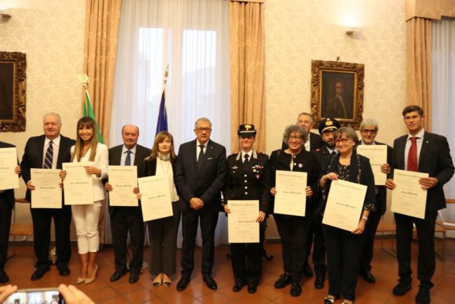 La cerimonia è stata l’occasione per celebrare i valori e gli ideali che sono alla base della Repubblica Italiana e che attraverso il riconoscimento delle benemerenze acquisite dai cittadini ribadiscono con forza la necessità di un impegno volto a perseguire gli interessi generali della collettività ma anche per ricordare le vittime dell’alluvione che ha ferito il territorio attraverso le parole del prefetto Darco Pellos. Alla cerimonia hanno presenziato le principali autorità civili e militari regionali e provinciali, nonché i sindaci dei Comuni di residenza degli insigniti, alcuni dei quali hanno accompagnato i rispettivi concittadini insigniti nel ritiro del diploma 0.M.R.I. La cerimonia si è conclusa con un brindisi augurale. Hanno ricevuto il riconoscimento dell’Ordine al Merito della Repubblica Italiana: