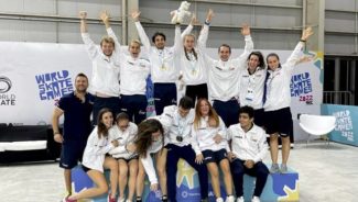 PATTINAGGIO ARTISTICO – Con l’ultima giornata dedicata ai Gruppi spettacolo si chiude il ricco calendario delle competizioni di pattinaggio artistico dei World Skate Games, dominati dall’Italia con 31 medaglie complessive. Per la cronaca ieri lo squadrone del Ct Fabio Hollan porta a casa un altro bottino pesante: un oro, un argento e due bronzi. Due arrivano subito nella gara Precision Senior con i Gruppi Precision Skate Bologna, secondo, e Sincro Roller, terzo. Nei Quartetti Senior ci confermiamo i più forti. Deja Vu con “So it is written” ha ottenuto il punteggio di 115.000 punti conquistando il terzo posto mentre Celebrity, che porta un disco ispirato alla danza classica, esegue magistralmente il pezzo conquistando la medaglia d’oro. Purtroppo siamo fuori dal podio di un soffio nella gara dei Grandi Gruppi.