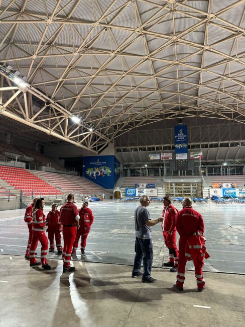Con questo motto, in occasione dell’apertura del centro di accoglienza disposto dal Coc di Ancona presso il PalaPrometeo, a causa del terremoto che ieri ha colpito la regione Marche, il Comitato della Croce Rossa di Ancona si è subito attivato già nelle ore successive, mettendo a disposizione volontari ed equipaggi formati, allestendo la struttura in caso di necessità.