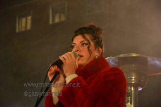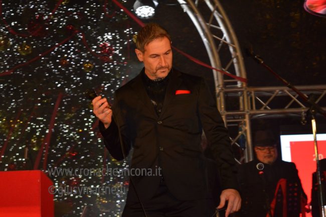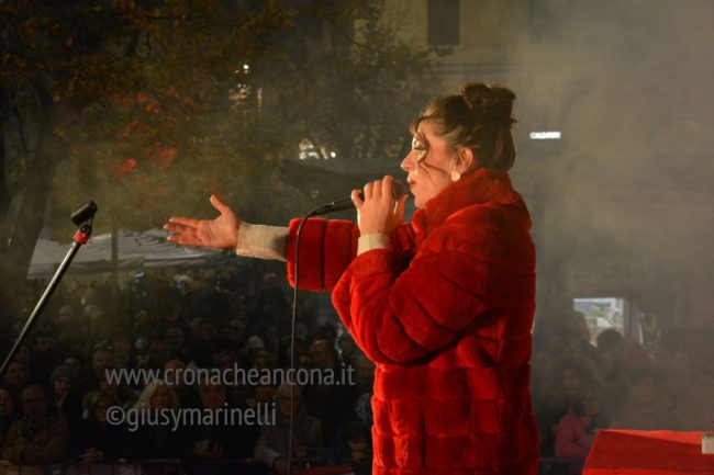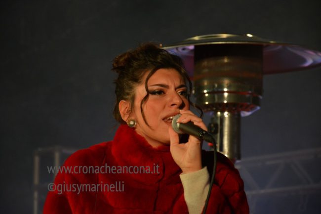 Qualche parola sempre del presentatore per dare il benvenuto a tutti, scherzare con il pubblico e ricordare le mille difficoltà che abbiamo passato anche recentemente con il terremoto e poi subito spazio alla musica con Cecile. Cappotto rosso, pantaloni bianchi. I colori che in maniera perfetta uniscono Ancona ed il Natale.