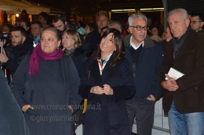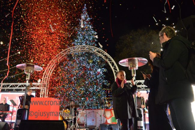 Sul palco sono poi giunte le autorità: la sindaca Valeria Mancinelli con tutta la giunta tutta. Dopo aver consegnato un mazzo di fiori a Cecile, Mancinelli ha ricordato come questo sia il suo ultimo Natale da prima cittadina ma anche