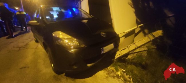 Non si ferma all’Alt e accelera: l’auto si schianta contro un garage, occupanti in fuga