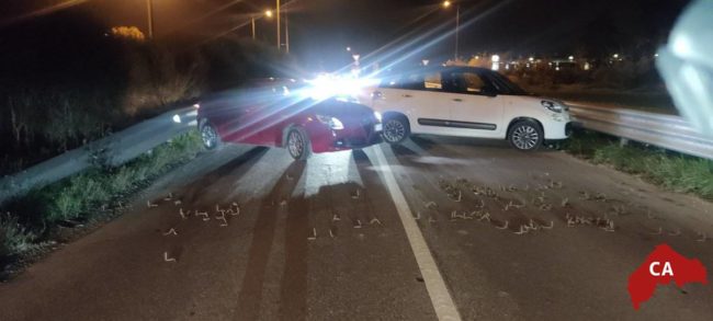 Le auto messe dalla banda a chiudere la strada (Foto: Fabrizio Capilupo)