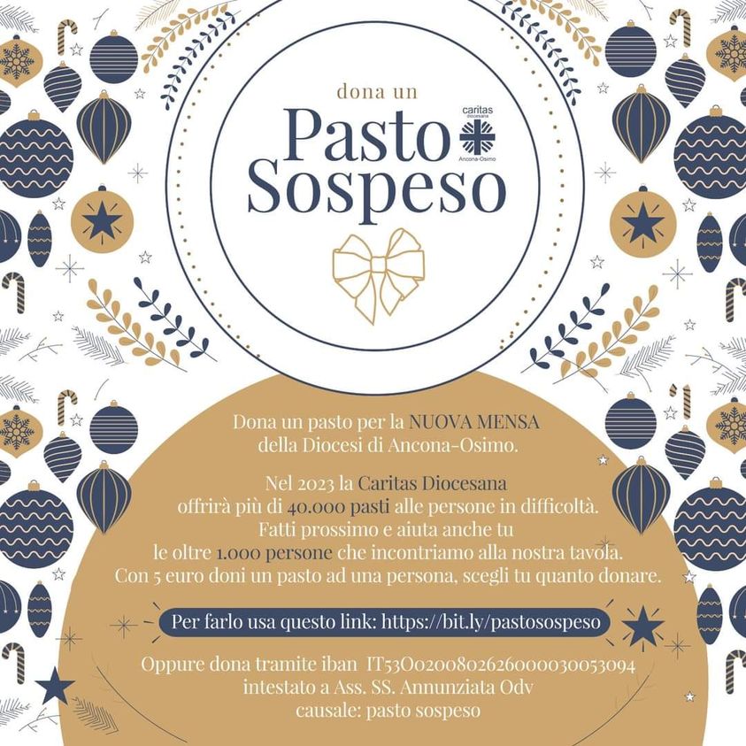 Nel 2023 la Caritas Diocesana Ancona-Osimo offrirà più di 40.000 pasti alle persone in difficoltà. Di qui anche l’iniziativa natalizia ‘Dona un pasto sospeso’. «Fatti prossimo e aiuta anche tu le oltre mille persone che incontriamo alla nostra tavola. Con 5 euro doni la cena ad una persona, scegli tu quanti pasti donare» scrive la Diocesi. Chi volesse contribuire per versare la propria donazione con bonifico Bancario al seguente IBAN: IT 53 O 02008 02626 000030053094 Intestato a Ass. SS. Annunziata OdV oppure online su bit.ly/pastosospeso.
