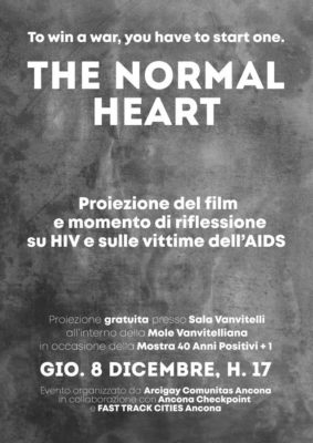 Come evento del panel presentato il primo dicembre alla presenza delle autorità e dei rappresentanti della Associazioni organizzatrici, giovedì alle 17 verrà proiettato gratuitamente all’interno della Sala Vanvitelli della Mole, il film “The normal heart”, drammatico americano del 2014 diretto da Ryan Murphy e scritto da Larry Kramer.