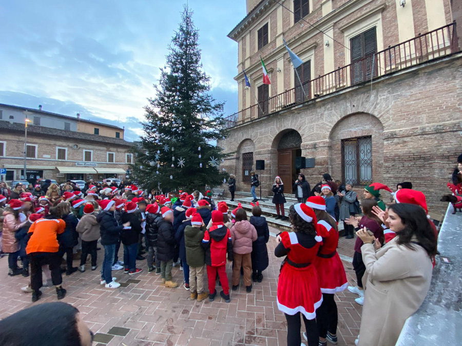 Grande Festa nel pomeriggio di ieri in piazza Lippera a Cerreto d’Esi, per l’accensione dell’albero di Natale. Erano presenti l’assessore Daniela Carnevali ed il vicesindaco Michela Bellomaria, che hanno portato il saluto del sindaco David Grillini, assente per motivi di salute. «Tantissimi bambini della scuola primaria dell’Istituto Comprensivo “Italo Carloni”, tutti muniti del caratteristico cappellino rosso da babbo Natale, hanno animato la piazza con girotondi danze e filastrocche,- ricorda una nota del Comune di Cerreto D’Esi – guidati dalle loro bravissime maestre, per dare il via al ricco calendario di eventi di “Aria di Natale 2022”. È stato emozionante assistere a tanta partecipazione. Prima di tutto desideriamo ringraziare le insegnanti di tutte le scuole di ordine grado: asilo nido, materne, primarie e secondarie, per aver accettato la nostra proposta di realizzare i gli addobbi per l’albero di Natale secondo il principio di risparmio energetico. La loro scelta di costruirli con materiali riciclati, ha dato un doppio segnale, quindi anche quello del recupero».