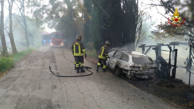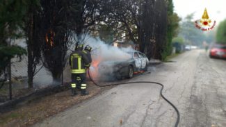 Un’auto, per motivi in corso di accertamento, ha preso improvvisamente fuoco mentre era in sosta lungo la strada.