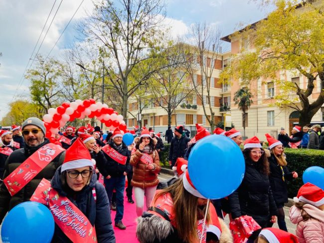 In tanti, famiglie, atleti e ‘camminatori’ di tutte le età, professionisti della Fondazione Salesi e medici del presidio ospedaliero, si sono ritrovati fianco a fianco, al Viale della Vittoria ad Ancona, davanti allo Stadio Bar, per prendere parte all’allegro e coloratissimo corteo, che guidato dai Babbi Natale e dagli elfi della Fondazione Ospedale Salesi Onlus, ha percorso le vie del centro, regalando un ‘tuffo’ nella magica atmosfera delle feste ai tanti bambini presenti.