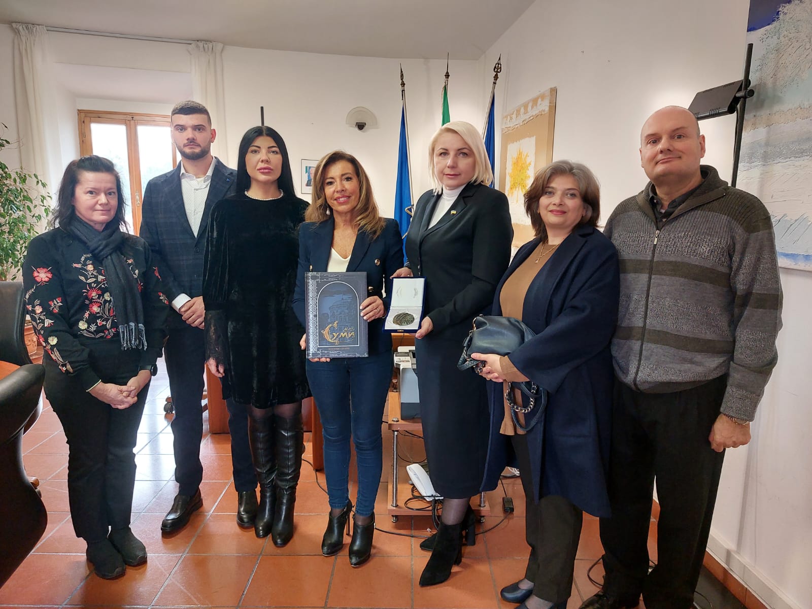 da sin. Adriana Khanyk, Erik Di Lella, Victoria Motrechko, il sindaco Stefania Signorini, il vicesindaco Vira Motrechko, Rosa Garofalo e Domenico Di Lella