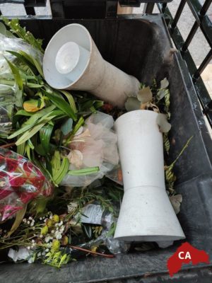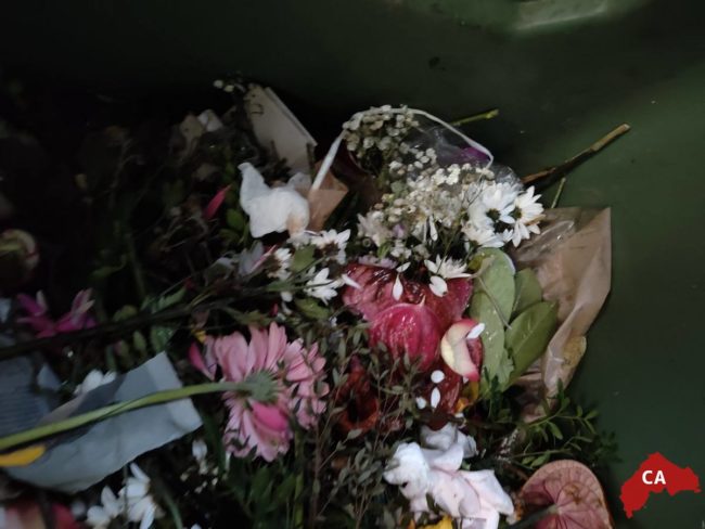 I fiori freschi, gettati nel cassonetto
