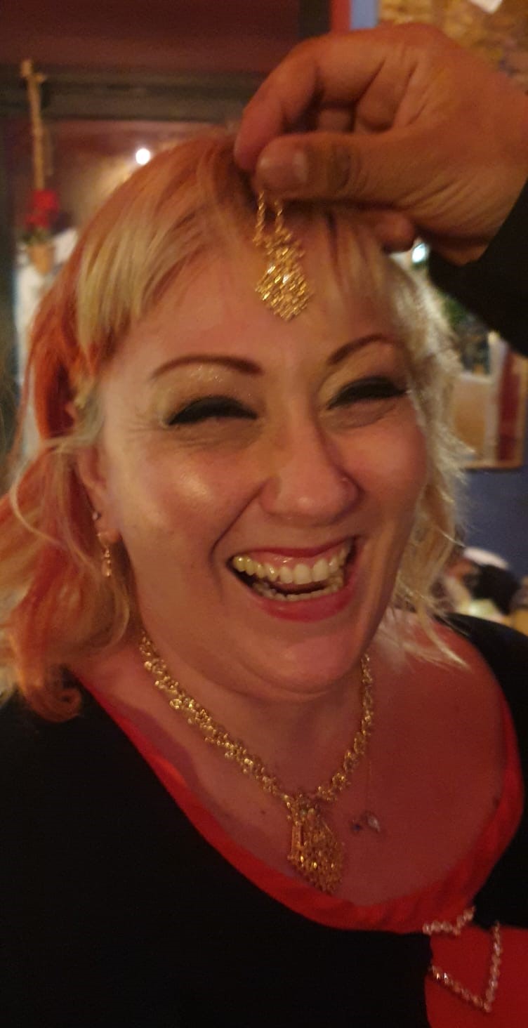 Patrizia Guerra, presidente dei City Angels Ancona, ieri sera vestita dagli ospiti pakistani con gli abiti della regina che nella tradizione del loro Paese rappresenta la ‘salvatrice di tutte le anime’