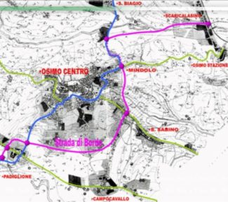 Il tracciato della Strada di Bordo, la variante a sud pensata dalle amministrazioni comunali delle Liste civiche Osimo