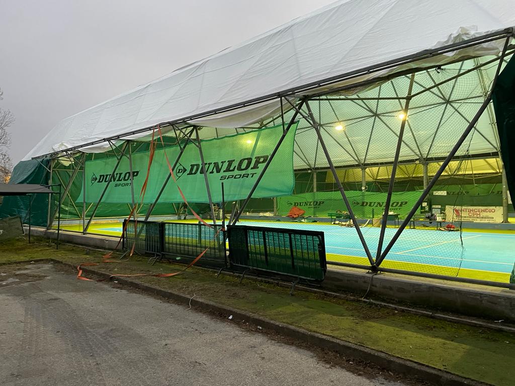 Tra la tarda mattinata e il primo pomeriggio di sabato 17 settembre la costa anconetana fu investita da fortissime raffiche di vento, che danneggiarono anche altre strutture sportive di privati. Il Comune di Falconara convocò subito il Coc e i tecnici dell’ente, insieme agli addetti delle ditte del verde e di Marche Multiservizi, eseguirono numerosi sopralluoghi, anche in via dello Stadio per verificare i danni subiti da uno dei due palloni geodetici dell’impianto sportivo dedicato al tennis. «Grazie alla tempestività del settore dei Lavori pubblici sono state recuperate le risorse necessarie per una copertura nuova – dice l’assessore allo Sport Raimondo Baia – che rimarrà a disposizione della comunità negli anni a venire. L’installazione del nuovo pallone geodetico completa il rinnovamento del polo sportivo del tennis: con il completamento dei nuovi spogliatoi e il rifacimento del campo di gioco i falconaresi e tutti gli utilizzatori della struttura possono giocare in un impianto sportivo d’eccellenza, adeguato alle esigenze più attuali».