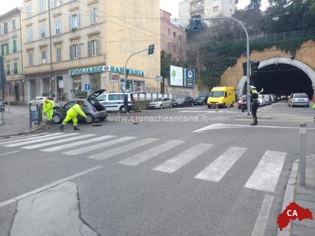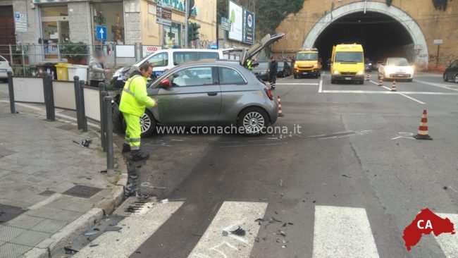 E’ successo all’incrocio semaforico tra via Giannelli e via Isonzo, appena fuori dalla Galleria del Risorgimento e già teatro di numerosi schianti.