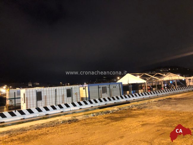 Intanto procedono senza sosta le operazioni sulla banchina 22 dello scalo dorico per l’allestimento, da parte della Protezione Civile, delle strutture e dei tendoni che saranno necessari alla prima accoglienza dei 110 naufraghi salvati nel mediterraneo insieme alla nave Ong Ocean Viking.