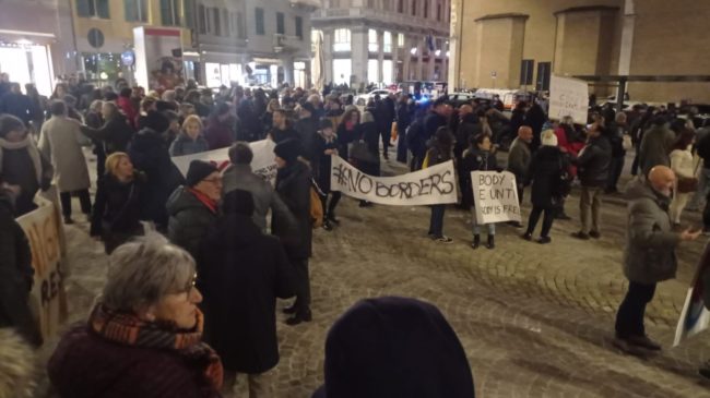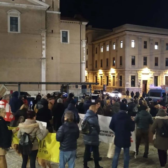 Nell’attesa che giungesse in porto la Ocean Viking, in città si svolgeva una manifestazione alla quale hanno preso parte diverse organizzazioni tra cui Amnesty International e i Centri Sociali delle Marche.