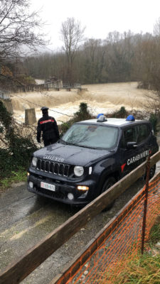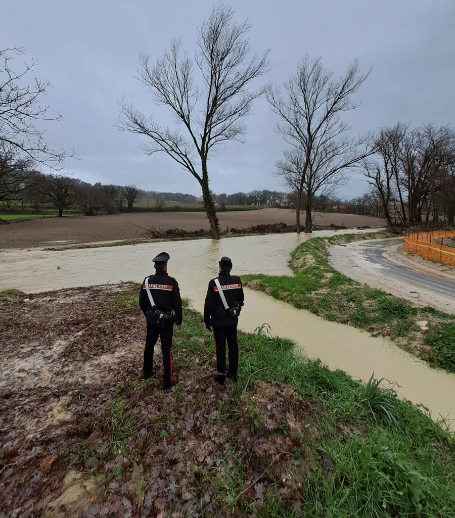 I carabinieri della Compagnia di Fabriano, stazioni di Arcevia, Genga e Sassoferrato, impegnati nella sorveglianza dei corsi d’acqua in piena