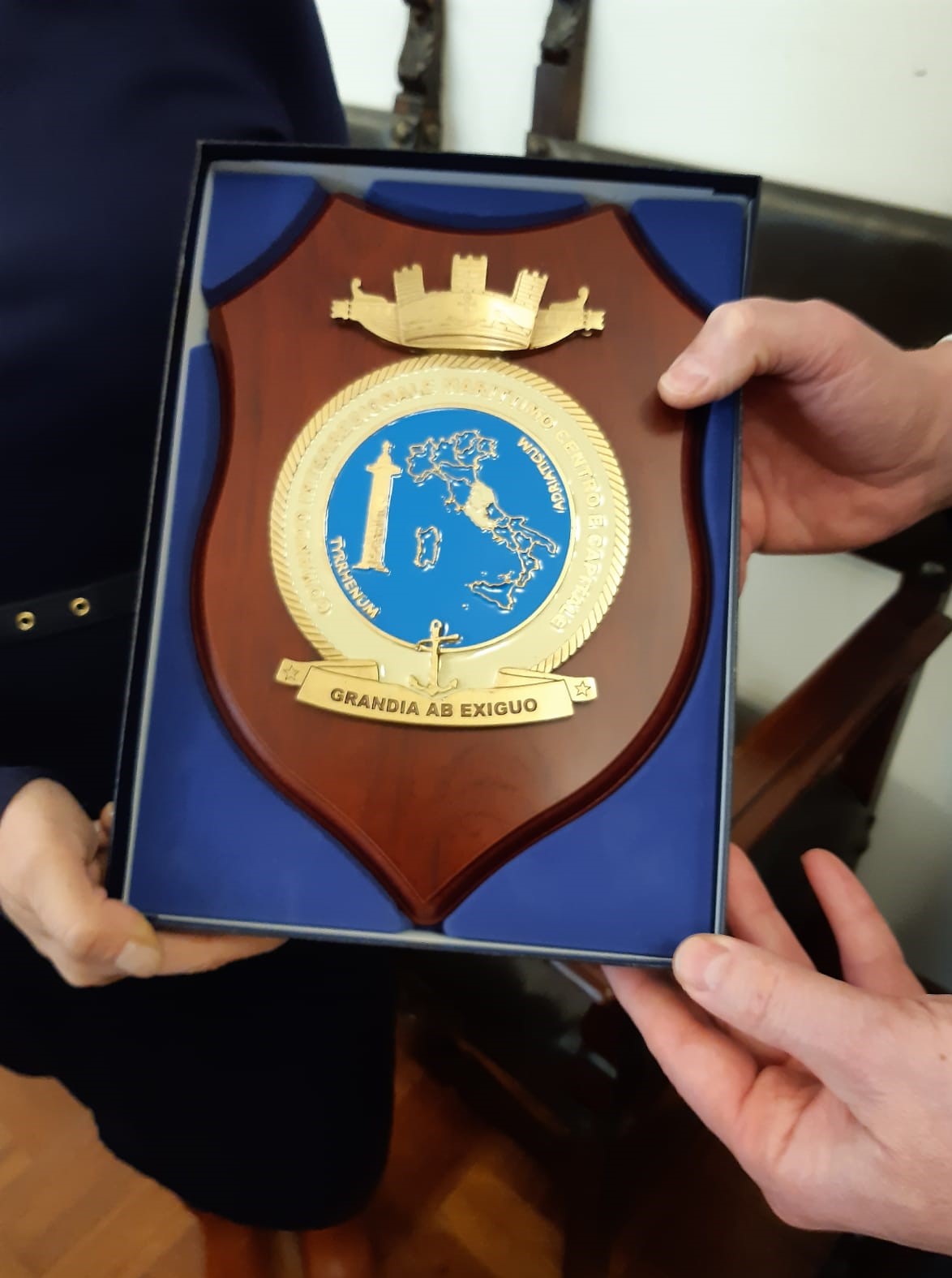 Accompagnato dal capo ufficio Infrastrutture, ammiraglio e assessore si sono intrattenuti attorno a temi che riguardano l’assetto portuale e le sue prospettive, gettando le basi per future azioni da concordare per valorizzare le specificità di tale patrimonio nel solco del percorso da tempo intrapreso. Al termine del breve incontro lo scambio di doni: il crest che raffigura il nuovo assetto interregionale della Marina militare e il volume fotografico sulle Marche che il sindaco consegna ai responsabili delle massime cariche nel loro avvicendarsi.