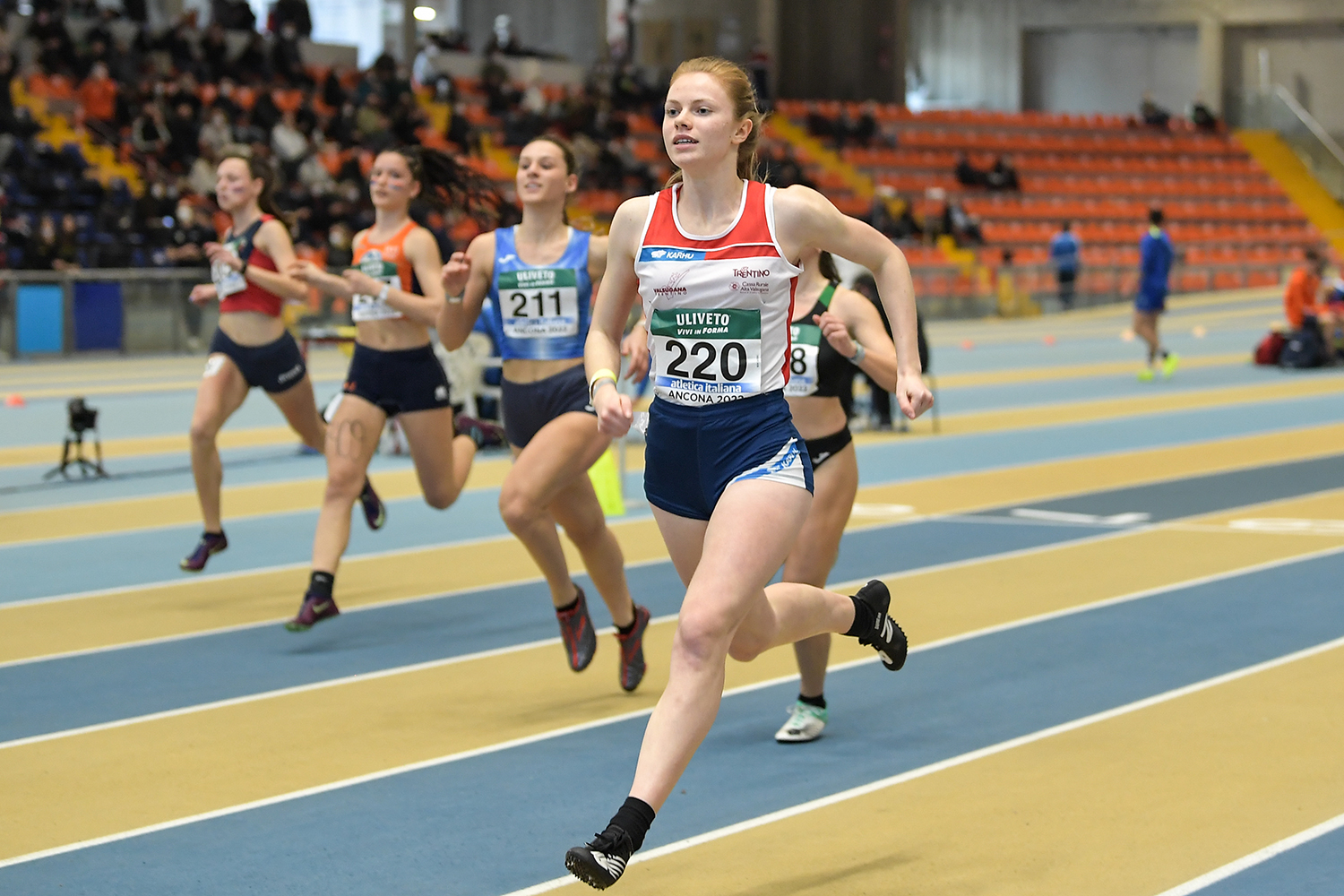 Segnali di crescita dai giovani marchigiani anche in pista con la sangiorgese Martina Cuccù (Team Atl. Marche) quinta nei 60 ostacoli con 8”93, dopo aver corso la batteria in 8”96. Tra gli under 18 si migliora di tre centesimi il compagno di club Filippo Angelini (Tam), con 8”63 per il quinto crono in finale, e realizza il personale un’altra allieva della Tam come l’osimana Angelica D’Addario, 9”35 in batteria e ottava nella finale con 9”41. Al maschile quinto anche Sebastiano Compagnucci (Atl. Avis Macerata) in 8”55 nella gara che vede al terzo posto il sambenedettese Andrea Pacitto (Atl. Virtus Lucca), 8”34 e 8”35. E tra gli under 20 si piazza in terza posizione Simone Coppari (Atl. Avis Macerata) nei 60 ostacoli juniores in 8”86 togliendo due decimi al suo primato. Ma è solo l’inizio per un fine settimana che ha il supporto di Casali Sport, azienda del territorio e brand tra i più conosciuti nel settore dell’impiantistica sportiva, e che attende il debutto di tanti azzurri nel doppio appuntamento di oggi, domenica 29 gennaio, con inizio dalle 9.30 e nel pomeriggio dalle 14.15 in diretta streaming su www.atletica.tv.