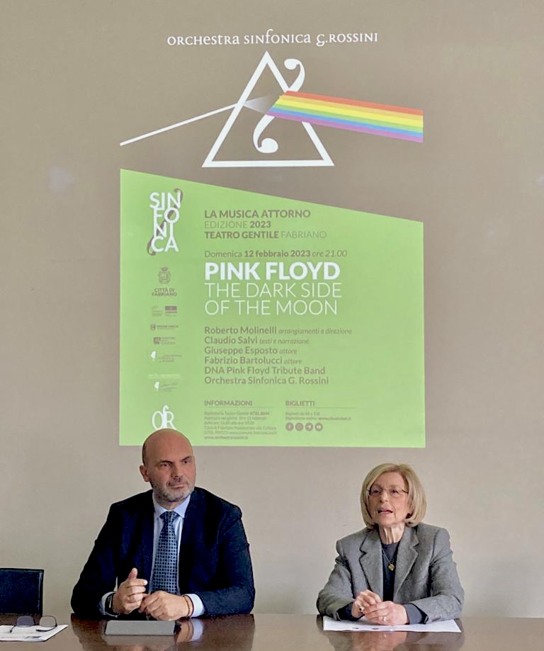 Il sipario della stagione si apre domenica 12 febbraio ore 21 sulle note dei Pink Floyd, tra i più famosi complessi rock di sempre: nata negli anni Sessanta dall’incontro di tre studenti di architettura e un estroso studente di pittura, la band inglese si distinse per l’inesauribile ricerca di una continua innovazione al servizio di spettacoli nati per coinvolgere il pubblico con musica, luci, video ed effetti speciali. Anche in quest’ottica, nel 1973 nacque l’album “The dark side of the moon”, che fece voltare pagina al rock dell’epoca, diventandone fin da subito una pietra miliare: ad oggi ne sono state vendute più di cinquanta milioni di copie, segno tangibile di quanto il mondo sia stato letteralmente invaso dal messaggio rivoluzionario della band londinese. La Rossini ha deciso di omaggiare il cinquantesimo anniversario di pubblicazione dell’album incaricando la confezione di un nuovo spettacolo all’autore Claudio Salvi e al direttore d’orchestra, compositore e arrangiatore Roberto Molinelli, che annovera collaborazioni di lusso, dai più grandi artisti della musica classica ai big della musica pop, passando per una premiazione a Sanremo come miglior arrangiamento. Sul palco del Teatro Gentile di Fabriano l’Orchestra Sinfonica G. Rossini, la cover band anconetana Dna, gli attori Giuseppe Esposto e Fabrizio Bartolucci e la bacchetta magica del maestro Molinelli: ingredienti per uno spettacolo di sicuro successo, tra musica e video, nel segno dei Pink Floyd.