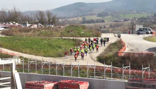 Gli ingegneri della provincia di Macerata partecipanti al corso di aggiornamento e formazione oggi nel cantiere del nuovo ospedale all’Aspio di Camerano