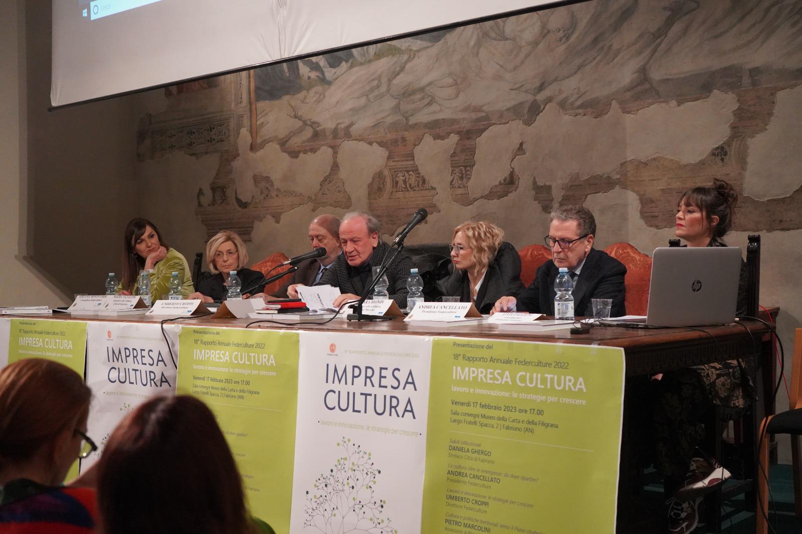 I progetti illustrati a Parigi hanno avuto un’immediata eco in città con la presentazione del 18esimo rapporto di Federculture: “Impresa cultura. Lavoro e innovazione: le strategie per crescere”. «I vertici nazionali di Federculture, con il presidente Andrea Cancellato e il direttore Umberto Croppi, hanno tracciato un quadro preoccupato, ma di decisa ripresa del mondo della cultura dopo l’emergenza Covid. Mentre gli interventi dell’Amministrazione comunale, – si legge ancora nel comunicato – dal sindaco agli assessori Nataloni e Marcolini, hanno delineato la volontà di investire nella cultura come fattore di sviluppo e occupazione, attraverso alcune iniziative di cui si stanno definendo contorni e caratteristiche: dal Festival nazionale della Carta al progetto di un centro di ricerca, formazione e sviluppo tecnologico che possa rinnovare la presenza di università e centri di ricerca in città, fino all’idea di una struttura museale sulla carta che, attraverso il concorso di vari attori pubblici e privati, recuperi antichi spazi in disuso e doti la città di una realtà culturale di rilievo nazionale e internazionale».