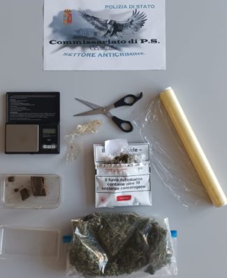 Successivamente, all’interno di un barattolo, anche una busta con della marijuana e altri singoli involucri in diversi punti dell’abitazione oltre a tutto il materiale normalmente utilizzato per il suo confezionamento.