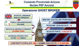 Una maxi-operazione denominata ‘Ghost broker’ e condotta dal Nucleo di Polizia Economico-Finanziaria di Ancona, che ha consentito di scoprire e disarticolare una rete di promotori finanziari che effettuava la raccolta del risparmio, per ingenti importi, da investitori sconosciuti e senza la necessaria autorizzazione.