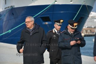 Il prefetto Darco Pellos al porto per l’attracco della Geo Barents del 17 febbraio