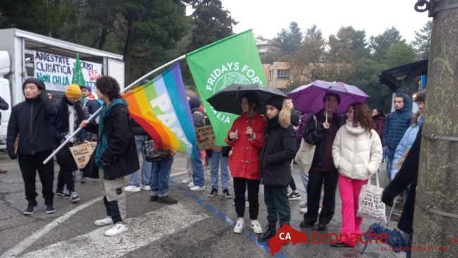 Giacche a vento per ripararsi dal freddo, un ombrello in una mano, un cartello colorato nell’altra, hanno aspettato che il gruppo si compattasse. C’erano quelli delle scuole superiori e quelli delle università. Insieme per gridare che «siamo a un passo dalla crisi climatica». «Scendiamo in strada per denunciare la nostra volontà di giustizia sociale e di giustizia climatica», spiega Filippo Chiusaroli, uno degli organizzatori della manifestazione. Che, oggi, ha per tema la finanza fossile. «C’è un enorme indotto di denaro pubblico destinato alle industrie inquinanti. Industrie nemiche del clima, che hanno un potere politico e un’influenza molto grande sull’economia, che impedisce l’azione politica. Non siamo più disposti ad accettare tutto questo», dice l’attivista.