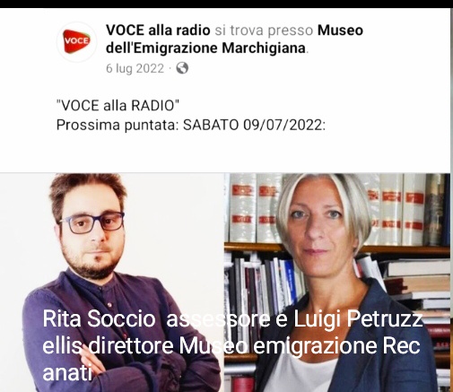 «Voce alla radio è una trasmissione su tutto ciò che sono l’Italia e le Marche nel mondo, nella cultura, economia, musica, sport, costume, enogastronomia e tanto altro. E’ per noi un grande piacere quasi una missione mostrare con orgoglio le eccellenze che la nostra regione può vantare in tutto il mondo e raccontare le storie dei suoi protagonisti».