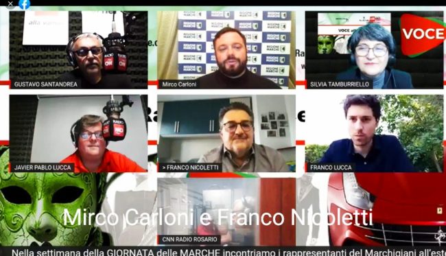 Da qualche tempo esiste una simpatica e coinvolgente iniziativa che mette in contatto marchigiani nel mondo ed argentini attraverso una trasmissione che va in onda ogni sabato alle 10 ora di Rosario e alle 14 ora italiana in streaming su Cnn Radio Rosario. Questo programma nasce da una idea condivisa tra Gustavo Fabian Santandrea e Javier Pablo Lucca residenti a Rosario. Grazie all’incontro con Silvia Tamburriello, residente ad Ancona, è stato ideato e successivamente realizzato il progetto di rendere visibili le Marche alla comunità italiana di Rosario e nel mondo.
