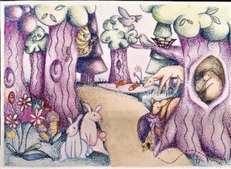 Le rappresentazioni, raffigurano un paesaggio fantastico realizzato dagli alunni della IIIA Arti figurative dell’Istituto.