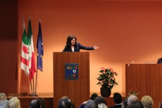 Chantal Bomprezzi durante il suo intervento al congresso regionale di sabato scorso