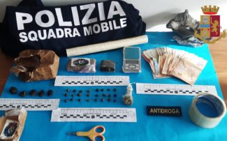 La droga e il materiale sequestrato dai poliziotti della Squadra Mobile