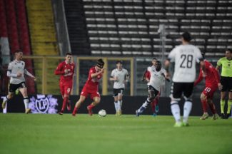 La coreografia della Curva Nord saluta l’ingresso delle squadre in campo, Simonetti gioca con una vistosa maschera a protezione del viso. Un calcio di punizione di Di Massimo all’11’ sorvola di pochissimo la traversa, il Cesena replica al quarto d’ora con un colpo di testa di Corazza sventato da Perucchini. Ancora Di Massimo al 16’ ha sui piedi la palla buona, destro strozzato. Il Cesena fa girare bene palla, il “cavalluccio” costringe l’Ancona nella propria metà campo. L’occasione più nitida per sbloccare il risultato nel primo tempo è del Cesena, Ciofi crossa dalla destra per Stiven Shpendi, l’attaccante italo-albanese tenuto in gioco da Martina (a terra) mette fuori da due passi. Prima del riposo l’Ancona perde Melchiorri: dopo un contrasto aereo con Prestia l’attaccante cade male a terra, il braccio ha un movimento strano. “Mi sono rotto il braccio” si legge dal suo labiale nelle immagini, l’attaccante lascia il campo il barella fra gli applausi del pubblico. Colavitto decide di non optare subito per la sostituzione, mantenendo tutti gli slot così a disposizione.