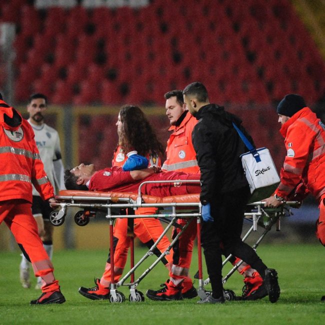 Ghiaccio sul braccio destro per Federico Melchiorri, costretto a lasciare il campo in barella