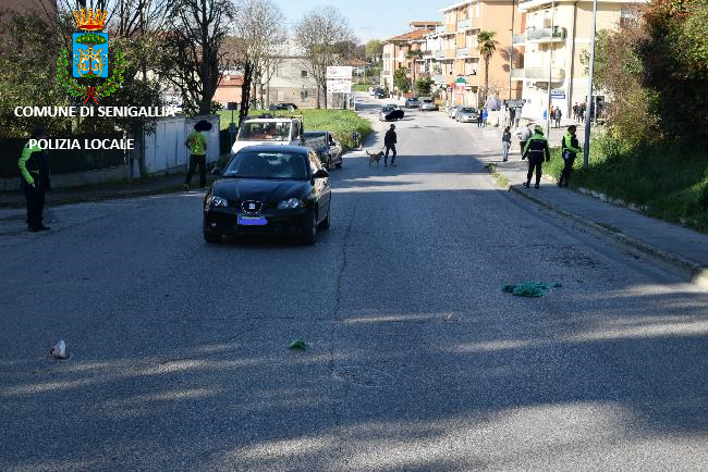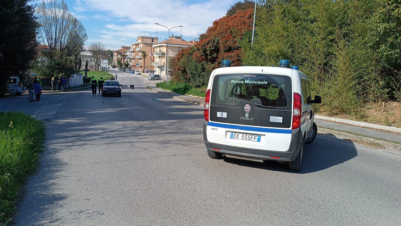 La Polizia locale di Senigallia in via Po, per portare i soccorsi e verbalizzare gli estremi dell’investimento pedonale